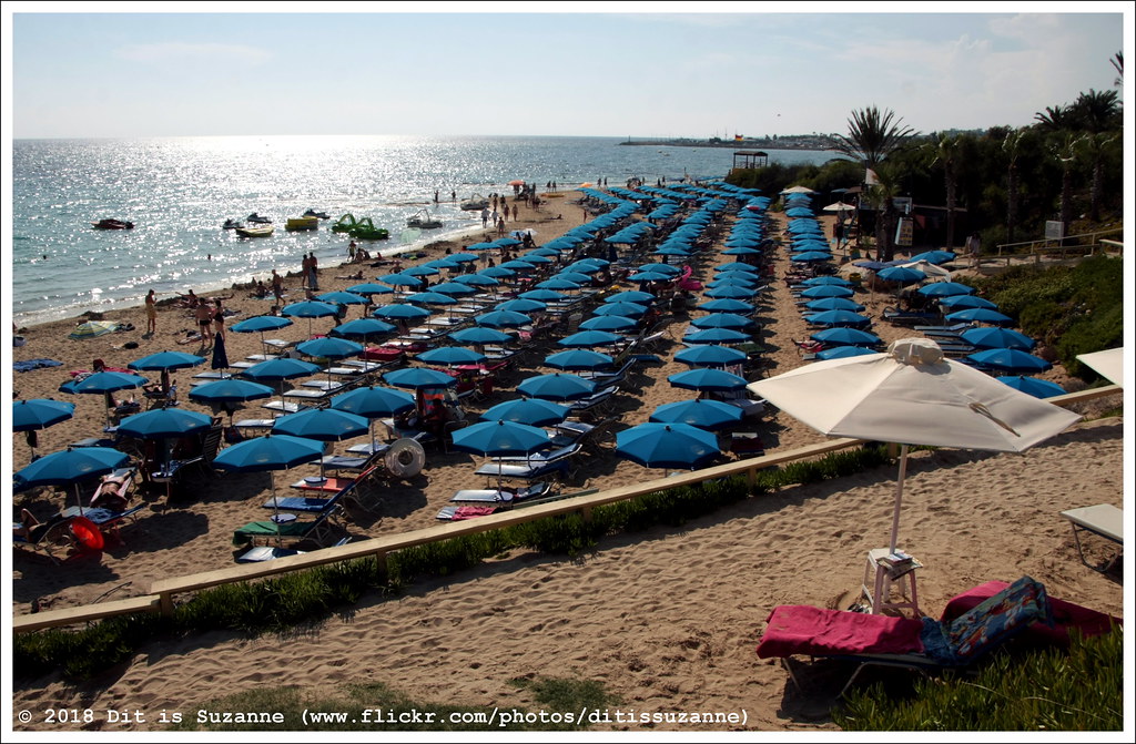 Sunbeds line the shoreline like sentinels of comfort, inviting visitors to recline and bask in the glorious Mediterranean sunshine while indulging in uninterrupted moments of bliss. Umbrellas provide respite from the sun's rays, casting cool shadows upon the warm sand beneath them.