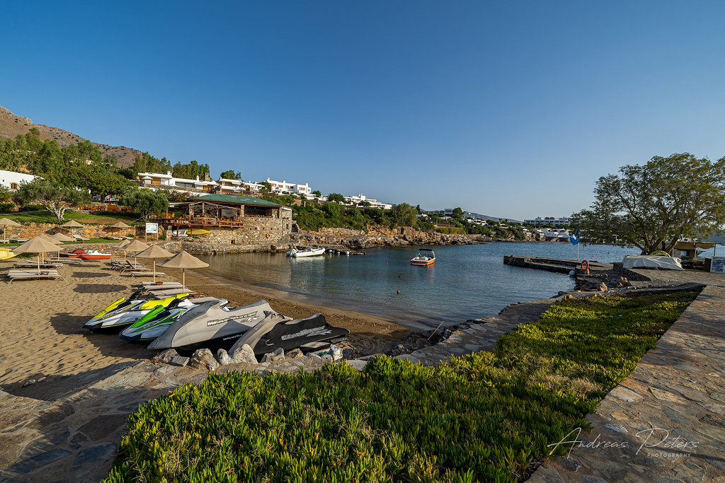 The swimming season at Elounda Beach occurs from June to October, when the water is warm and comfortable for swimming.