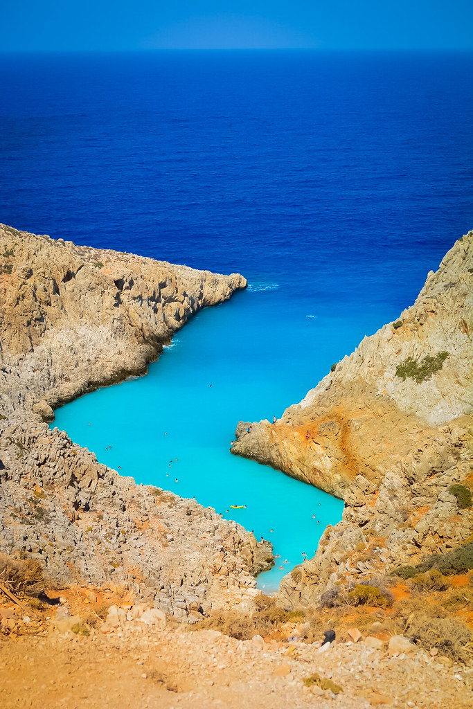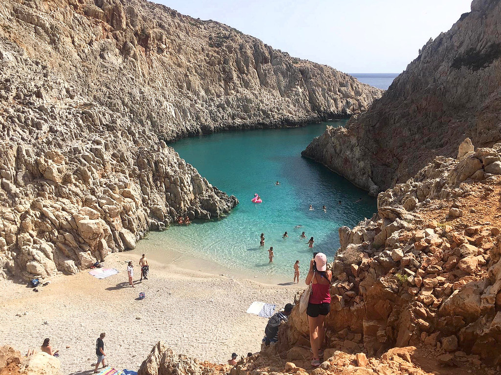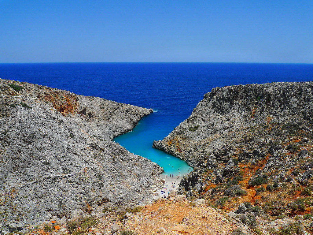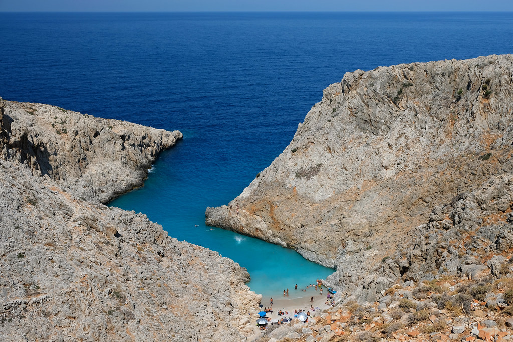 Seitan Limania Beach is a long, sandy beach located on the northwest coast of the island of Crete in Greece. The beach is known for its clear turquoise waters and is a popular spot for swimming, sunbathing, and snorkeling. Several restaurants and cafes are located nearby, as well as a few small hotels.
