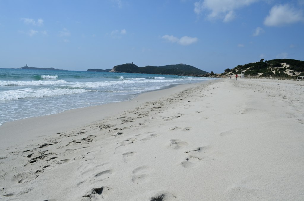 Simius Beach is one of the most beautiful and secluded beaches on the island of Sardinia. It is located in the south-eastern part of the island and is only accessible by foot. The beach is surrounded by cliffs and is about a 2-minute walk from the nearest parking lot.